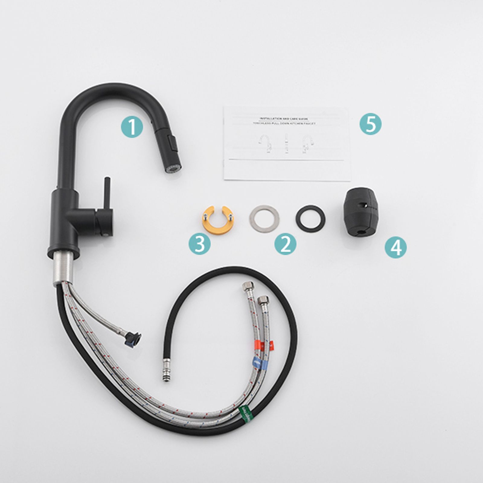 Sink Faucet, Brushed Nickel Kitchen Faucets with Pull Down Sprayer, Bathroom Sink Faucets?[ 360° Swivel Kitchen Faucet ]360° swivel black kitchen faucet with pull out spray supply full range of washing for your sink. This black faucet is suitable for bar sink, kitchen prep Sink,bathroom sink, kitchen sink and so on.?[ Pull Out Spray ]This pull down bar faucet with counterweight to lock firmly in place, and the sprayer head will automatically retract after each use.The 24" (60 cm) flexible hoses are already installed on the prep sink faucet, convenient and safe.