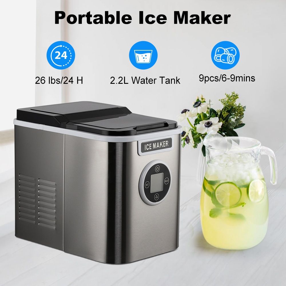Countertop Ice Maker with 9 Bullet Ice in 7 Mins, Portable Ice Machine with Ice Scoop and Basket , 26.5lbs/24H, Self-Cleaning,Stainless Countertop Ice Maker with 9 Bullet Ice in 7 Mins, Portable Ice Machine with Ice Scoop and Basket , 26.5lbs/24H, Self-Cleaning,Stainless Countertop Ice Maker with 9 Bullet Ice in 7 Mins, Portable Ice Machine with Ice Scoop and Basket , 26.5lbs/24H, Self-Cleaning,Stainless