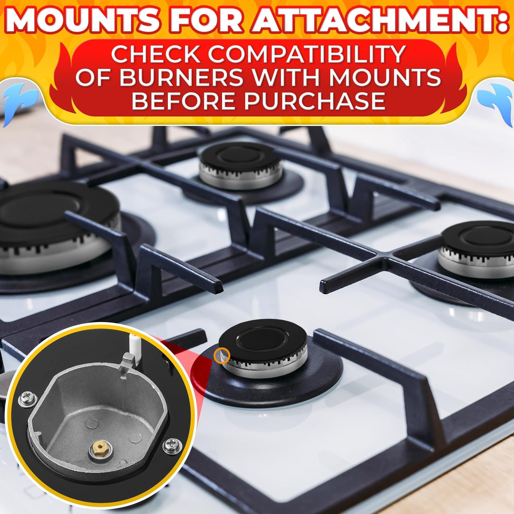3.easy to install gas stove burner covers: these gas burners for cooking are easy to install, just remove old burner and install the new portable gas burner. before install stove burner covers for gas stove top, cool down the portable stove burner to avoid burns.