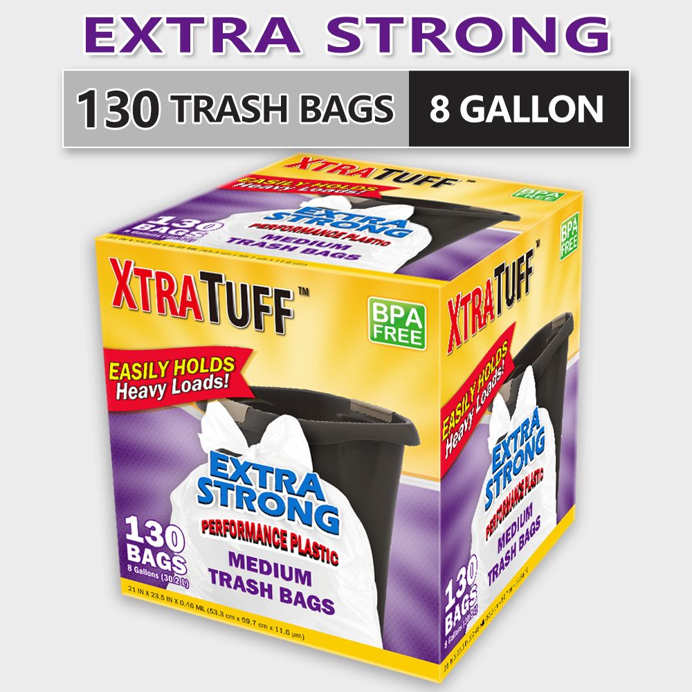 1.130 Bags 8 Gallon Disposable Large Garbage Puncture Tear Resistant Trash Bags