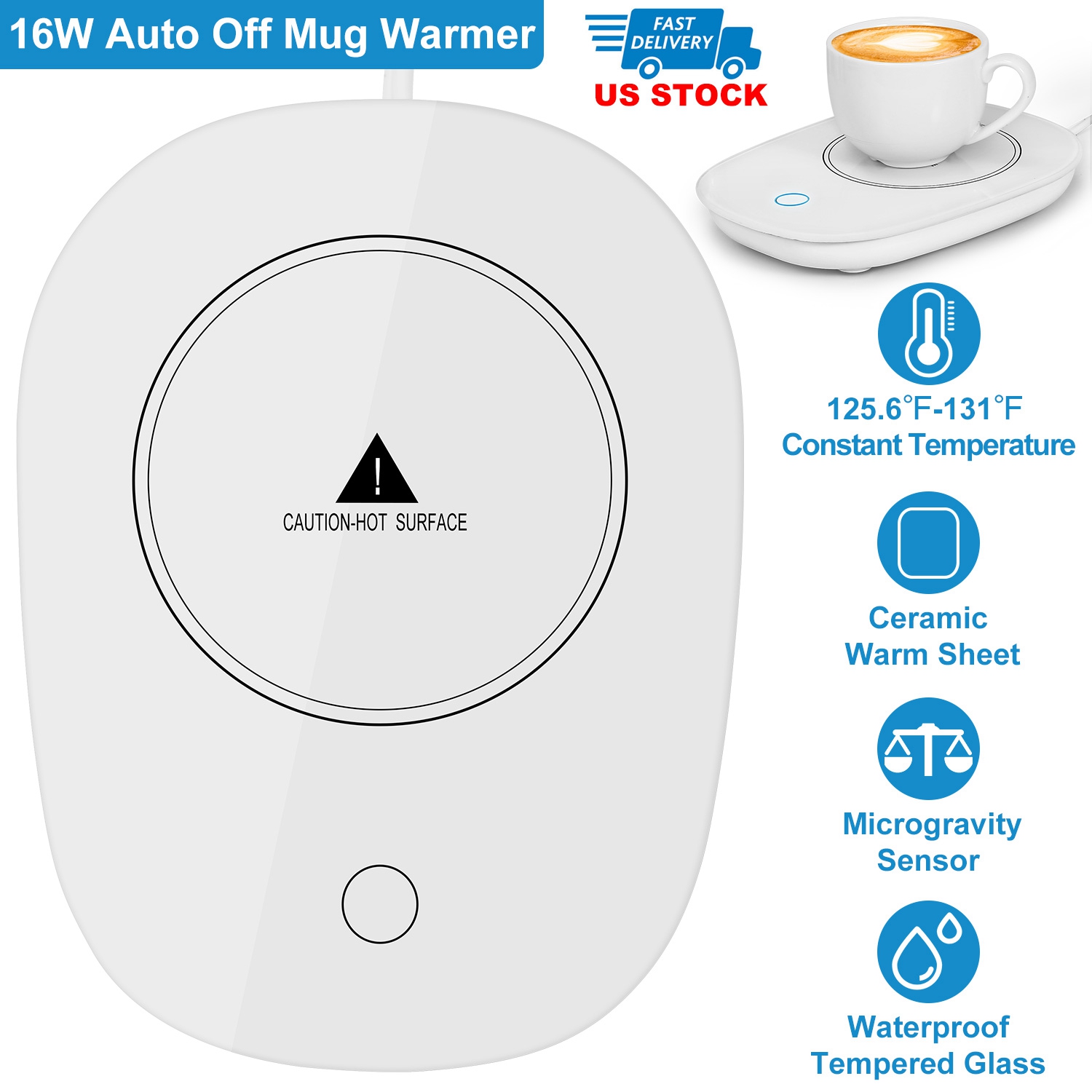 Built-in microgravity technology, automatic shut off function brings much more safety from the hazard caused by forgetting to shut down the machine. Made of waterproof, wear-resistant and tempered glass, which is very easy to clean and durable to use. Safe, low power consumption and convenient coffee warmer is optimal for daily use. Always keep your hot coffee or tea at a drinkable temperature (125.6℉/52℃-131F/55℃). An ideal gift for your parents, coworkers even yourself.