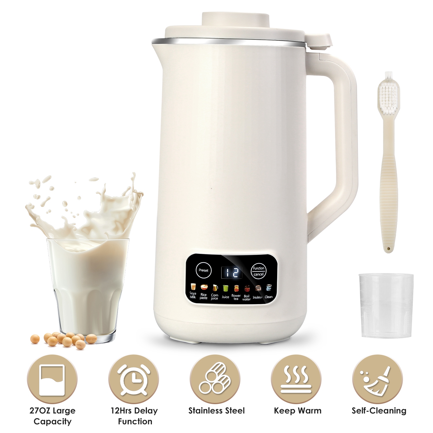 27OZ Nut Milk Maker with 12Hours Delay Function Self-Cleaning Keep Warm Automatic Soy Milk Maker Machine for Homemade Soya Milk Rice Paste Juice Corn