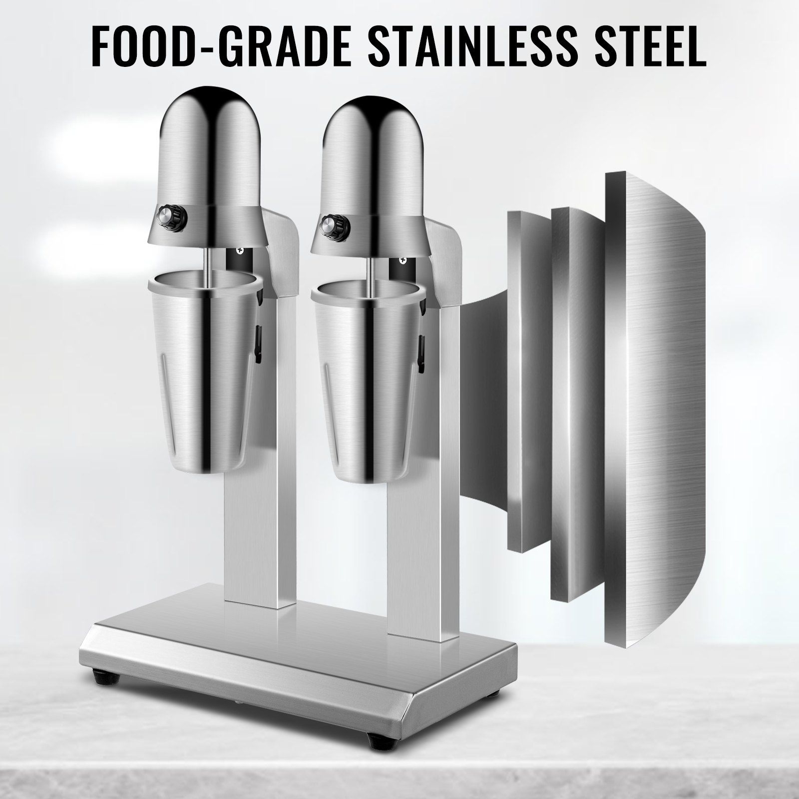 Constructed with heavy-duty stainless steel, our milkshake machine includes 2 food-grade stirring shafts to help you get the job done effectively and quickly. This drink mixer comes with four large-volume 800 ml cups, so you can start mixing drinks right away. All the outstanding features make it suitable for making milkshakes, fruit smoothies, milk tea, milk foam mixing, etc., which is widely applied in coffee shops, bars, tea shops, restaurants, and so on.